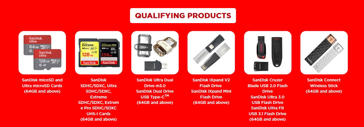 Applicable On : Purchase of SanDisk products having capacity of 64GB, 128GB, 200GB, 256GB & 400GB