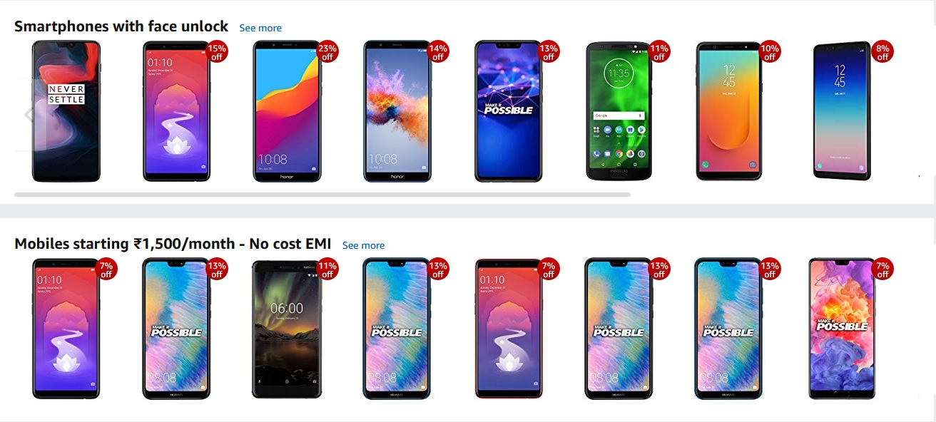 State Bank of India debit card users can get 10 percent instant discount while Amazon is offering 10 percent extra cashback on purchases above Rs. 6,000. Apart from these, you can also use your debit and credit cards to pay with no-cost EMI options.