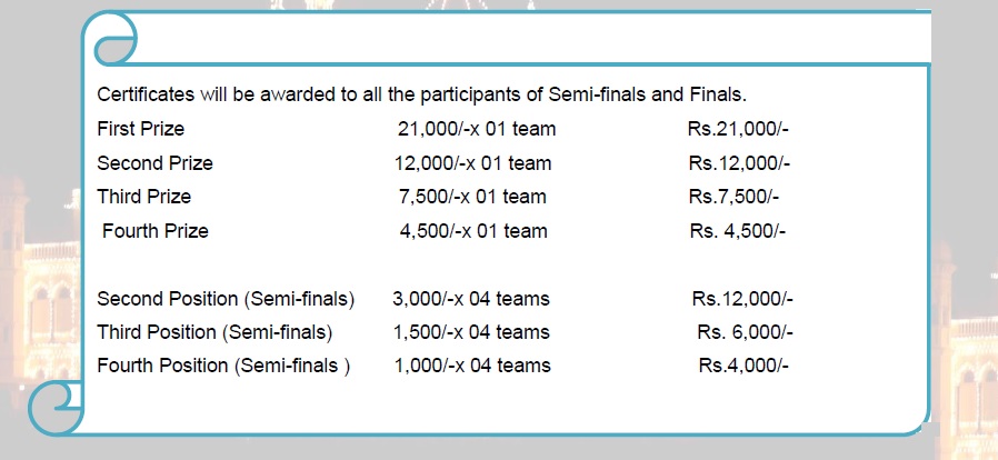14.All the participants of national semi-finals and final will be given a certificate of merit and winners will also be given cash prizes.
