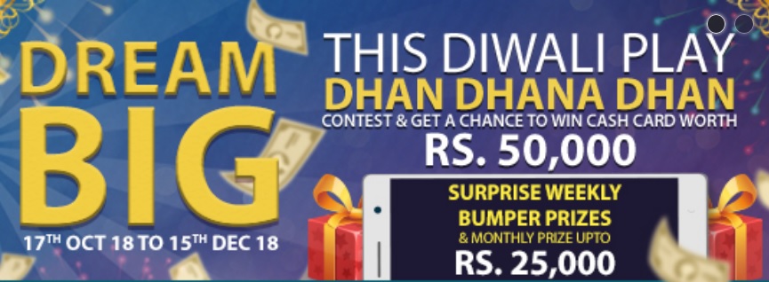 You have a Great Winning Chance! Play in Dhan Dhana Dhan Contest and you could win a Bank Gift Card worth up to Rs 50,000.