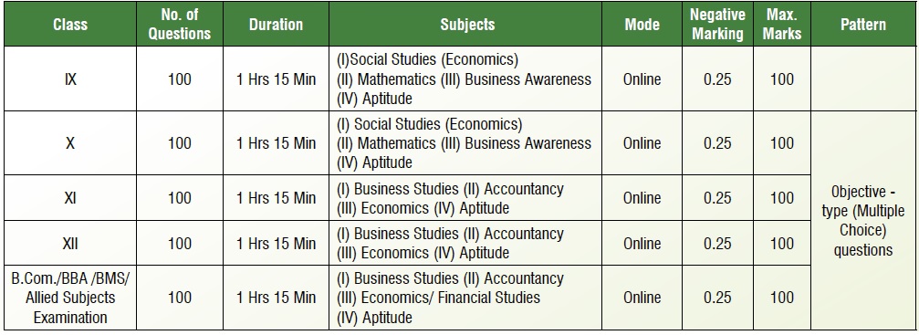 The registration is open to the Students appearing in class IX/X/XI/XII and B.Com./BBA/BMS/Aliied Subjects Examination. Students registered under open distance learning will also eligible for appearing in the aforesaid test.