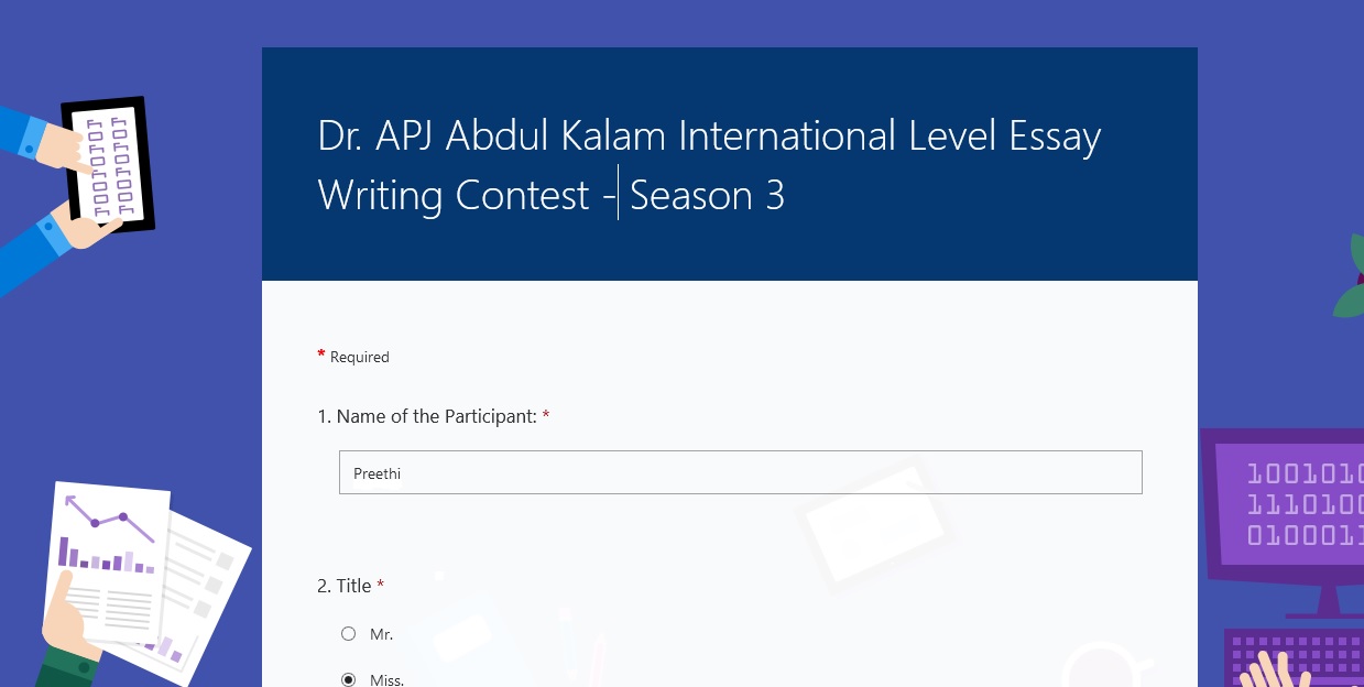 Contest Name : Dr. APJ Abdul Kalam International Level Essay Writing Contest 2018 Season 3