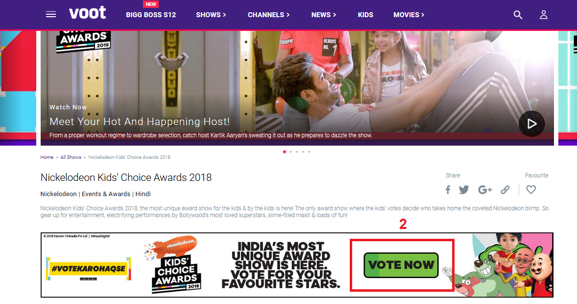 Nickelodeon Kids’ Choice Awards India 2018 Voting : voot.com