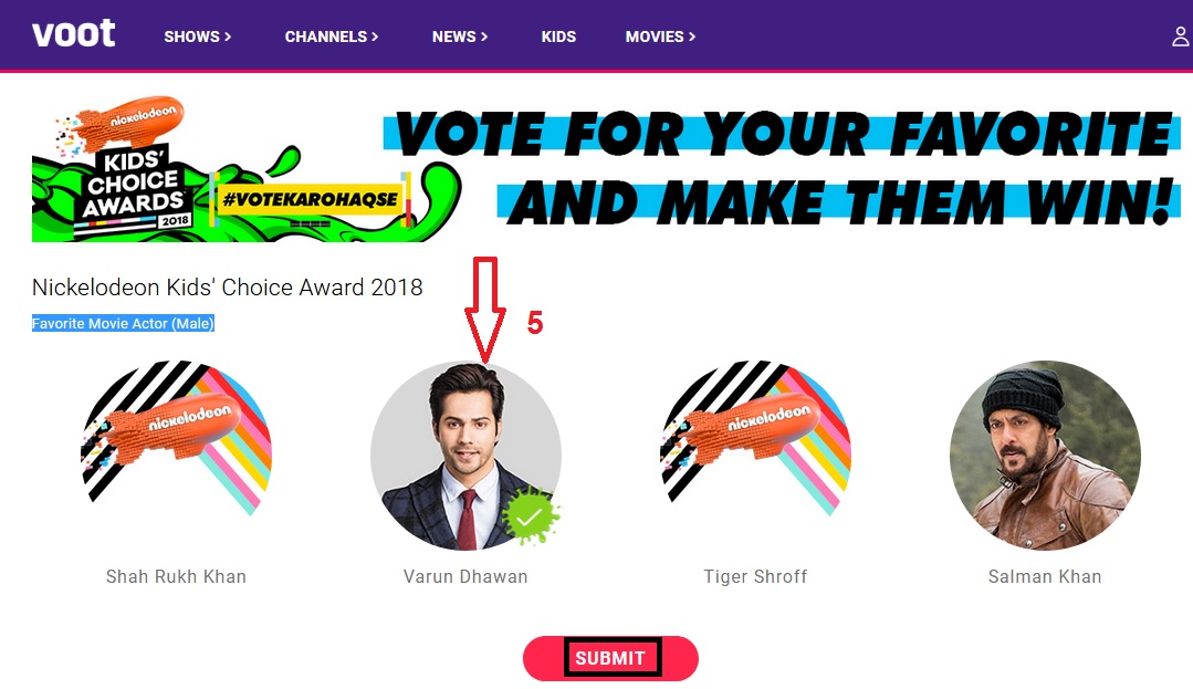 Contest Name : Nickelodeon Kids’ Choice Awards India 2018 Voting