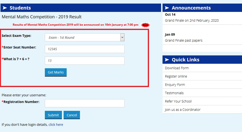 To view the result of Mental Maths Competition 2019, Kindly follow the steps mentioned below