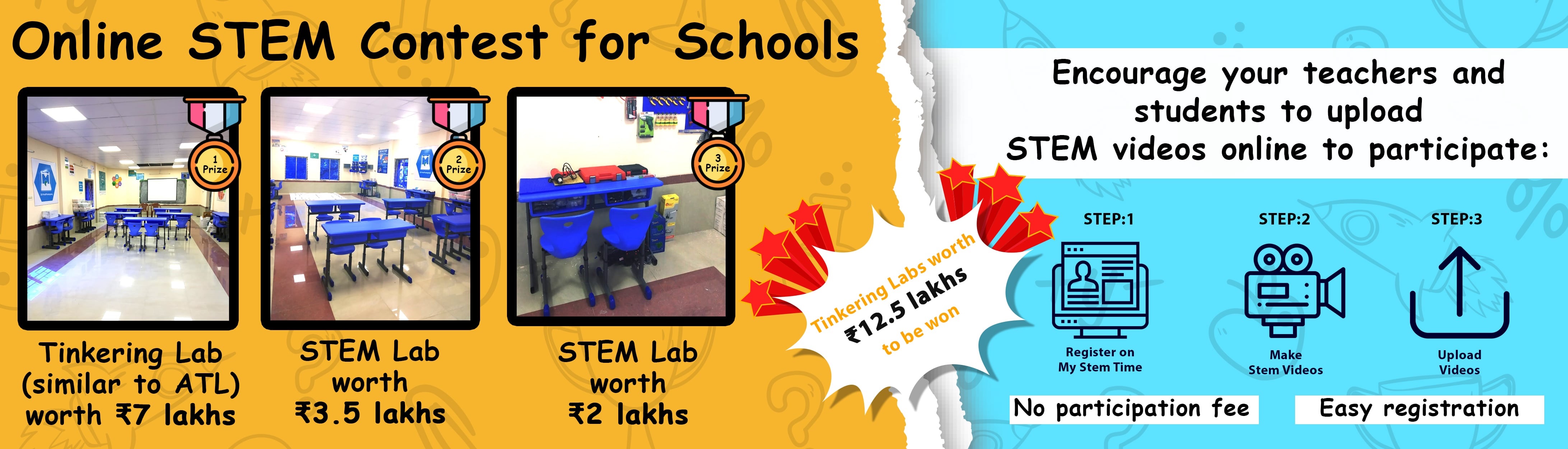 Be a part of the biggest online STEM contest and stand a chance to establish tinkering lab in your school worth Rs. Seven Lakhs for free.