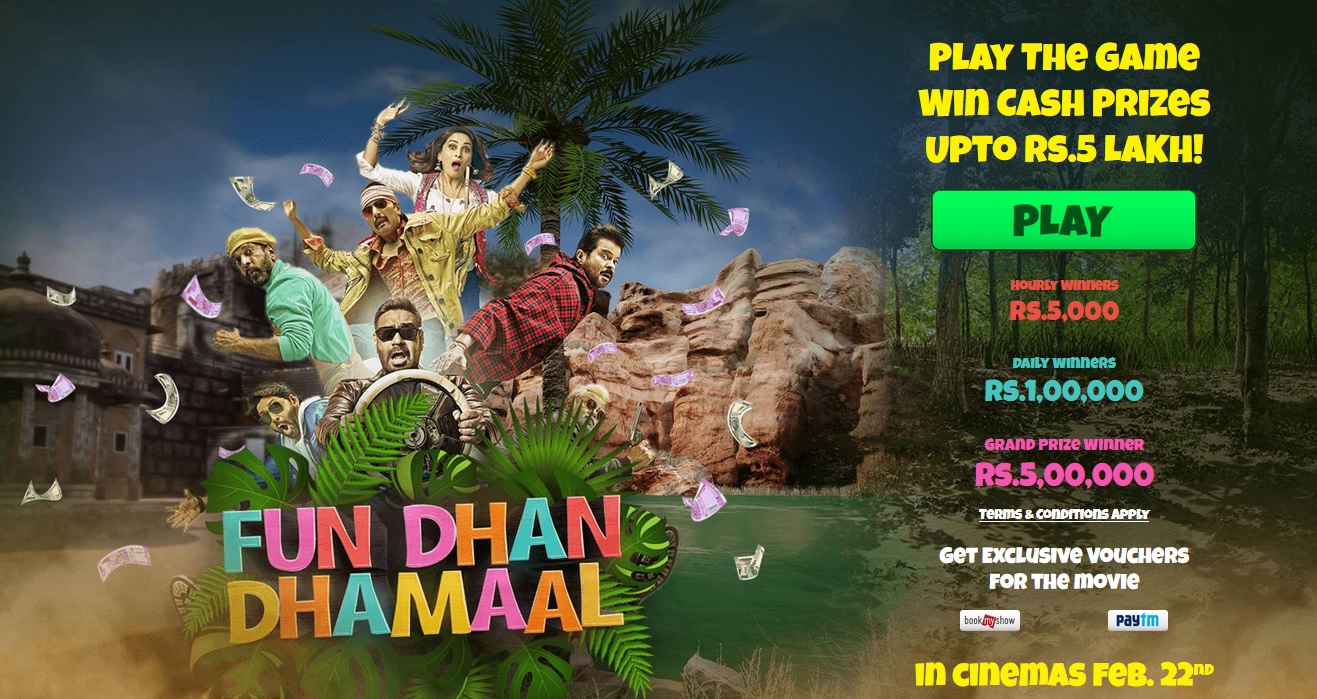 The questions will be based on the Total Dhamaal movie and will require the participant to watch the trailer to know the answer to the questions. Each level be of 60 seconds and the first 9 levels can be played unlimited times once they are active. The bonus level can be played only once.
