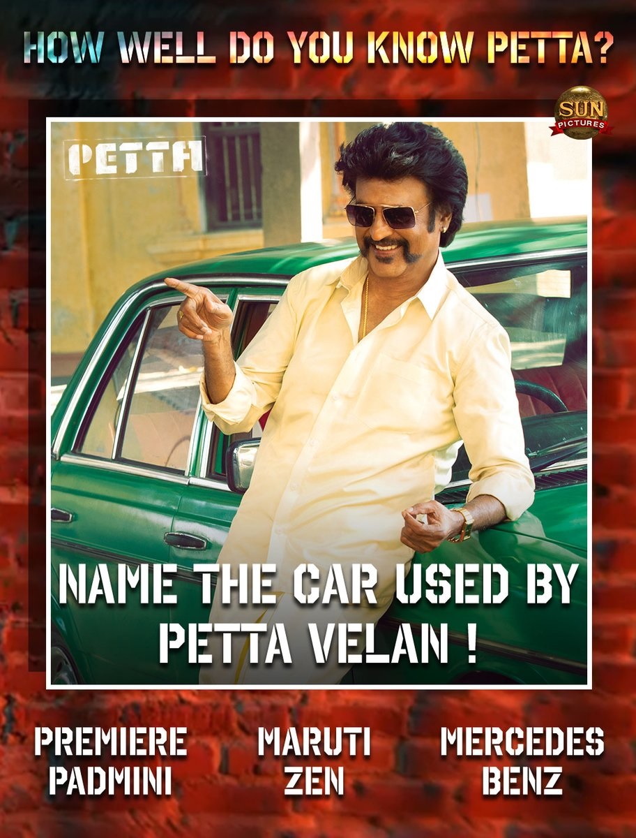 ** For Ex: If the contest questions are asked on SunPictures Twitter Official Page https://twitter.com/sunpictures & Instagram Official Page instagram.com on 08.02.2019 at 06:00 PM, the answers have to be sent on 12.02.2019, before 11:59 PM itself, to be eligible for winning an Autographed Poster from Petta crew member.