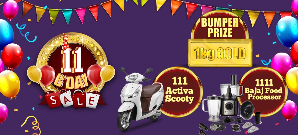 Naaptol 11th Birthday Sale 2019 : Win 1KG Gold/ Activa Scooty/ Bajaj Food Processor