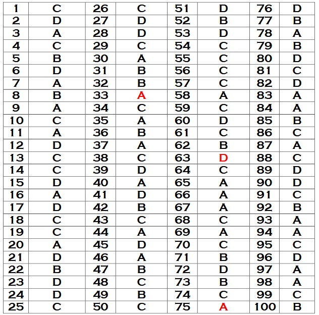 Please check the answer of questions number 94 in the answer key. I think it is wrong.