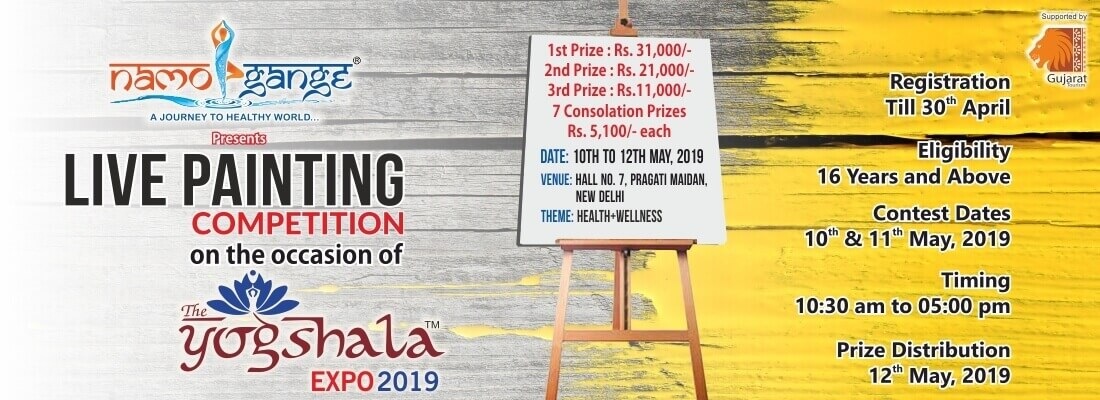 Along with The Yogshala Expo 2019, Namo Gange Trust is also organizing the “Live Painting Competition” on the theme ‘Health + Wellness’ from 10th to 12th May 2019.