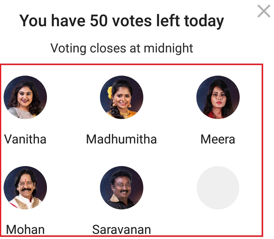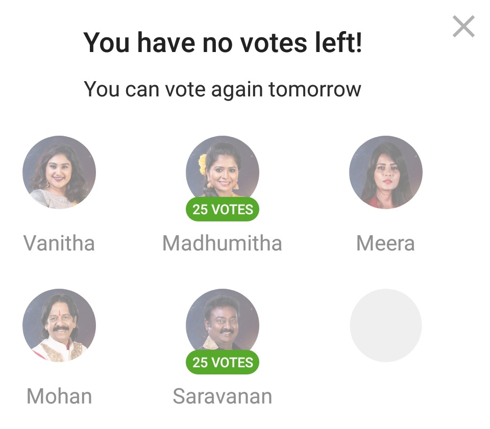 You have 50 votes each day to vote for Bigg Boss Tamil 3.