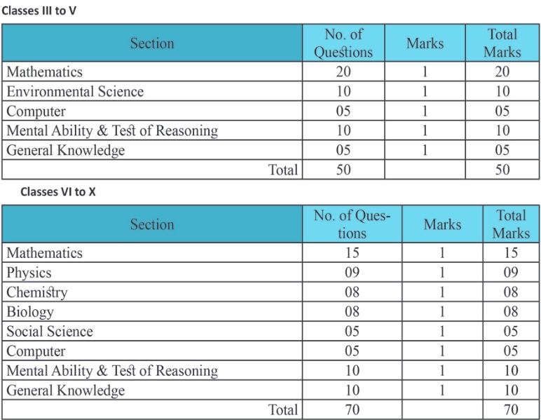 Applicable For : Students of Classes III, IV, V, VI, VII, VIII, IX and X