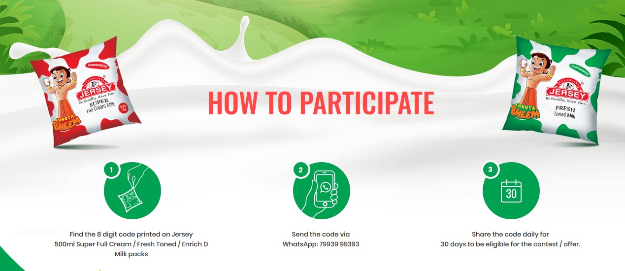 Drink Jersey Milk and Win Scholarship. Buy a Jersey 500 ml Super Full Cream / Fresh Toned / Enrich D milk pack and text us the unique number printed on it. Send this code and win exciting prizes.
