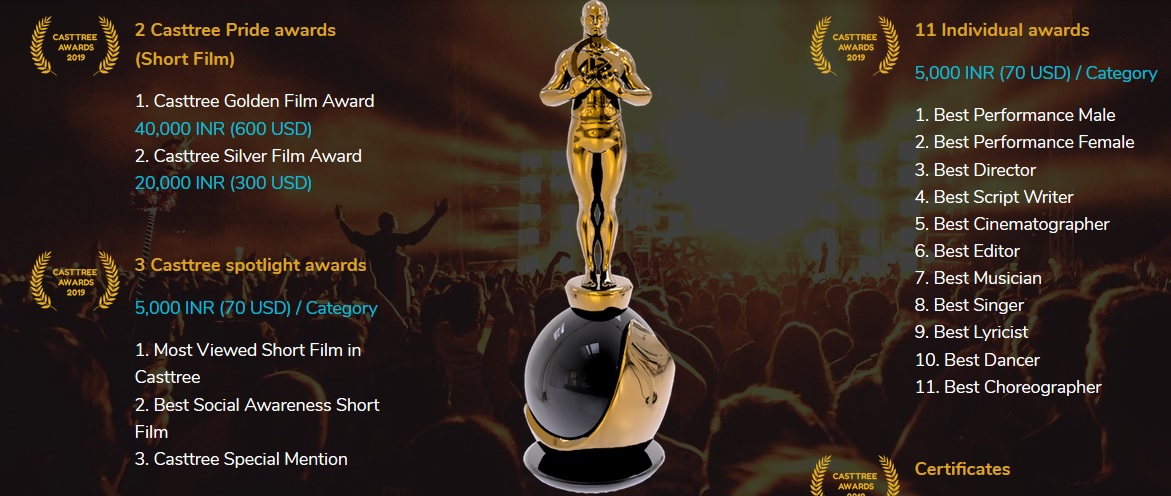 1. Casttree Golden Film Award 40,000 INR (600 USD)