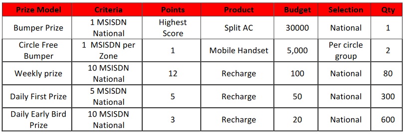 ** Bumper Prize – A Split AC worth up to Rs30,000.