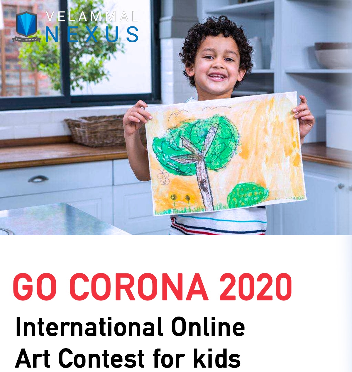 Velammal Nexus, a dedicated Educational organisation that creates new opportunities for the students to discover their talents and explore themselves, is organising GO CORONA 2020 an International Online Art Contest for Kids to kindle their latent talent and to sensitize them on the deadly pandemic, COVID 19.
