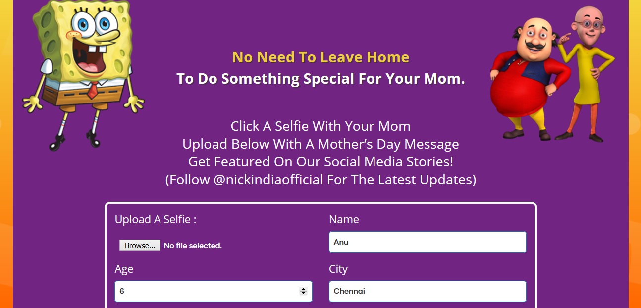 a) Log-on to the official Nick India website at the following link www.nickindia.com/mothersday during the Contest Period