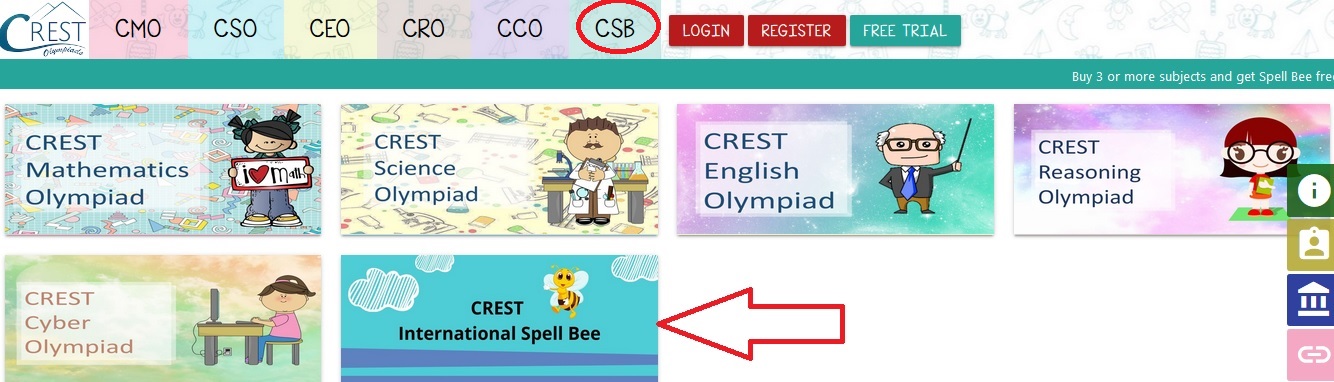 Students from classes 1-8 are eligible to give CREST International Spell Bee. Prospectus containing the registration forms are sent to all schools registered with CREST Olympiads for Spell Bee exam.