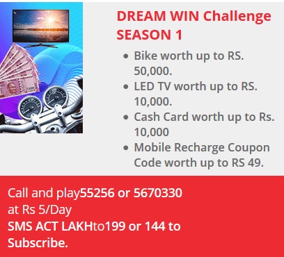 Dream Win Season 1 has got you a grand prize! Here is an amazing chance where you could win a bike worth Rs 50,000 and an LED TV worth Rs 10,000 and many more. Be quick and fast in Dream Win for a chance to win.