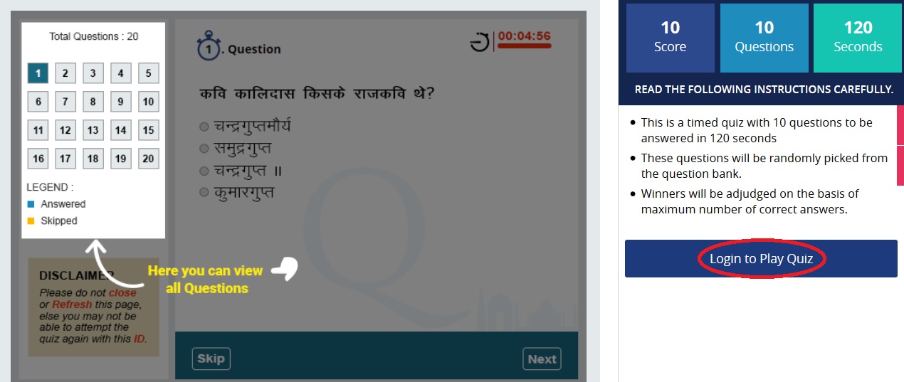 Website : https://quiz.mygov.in/quiz/the-ayush-sanjivani-quiz/