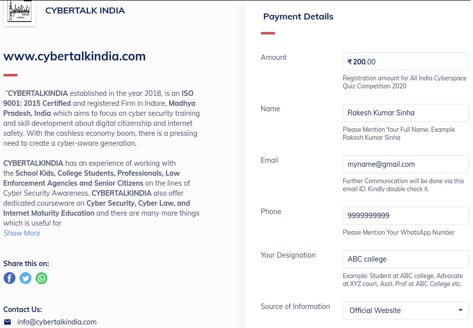 Cybertalkindia All India Online Cyberspace Quiz Competition 2020