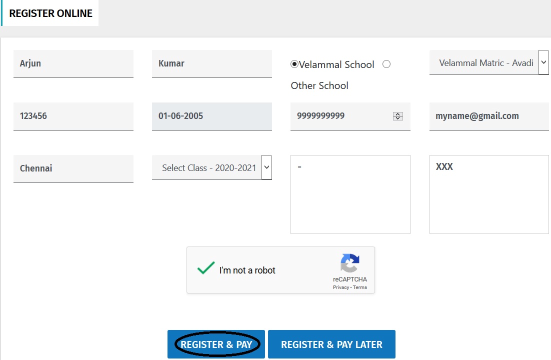 Step 3 : Fill the Registration Form with the required details and click on the “Register & Pay” button.