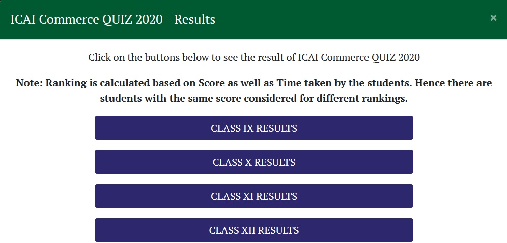 ICAI Commerce Quiz 2020 Results : icaiquiz.org