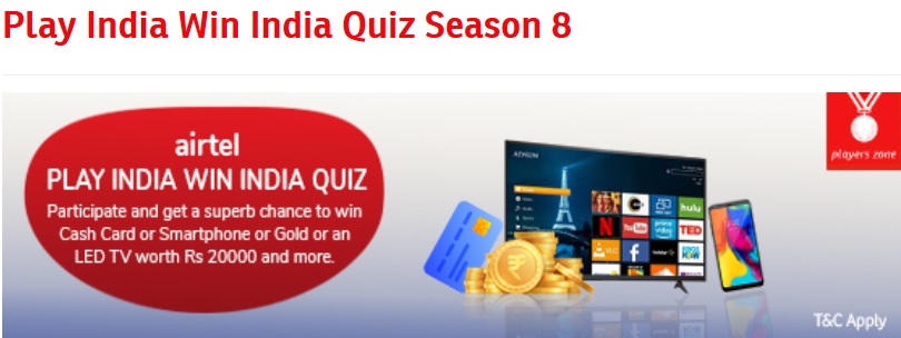 Airtel Contest Zone Play India Win India Quiz 2020 Season 8 : airtel.contestzone.in