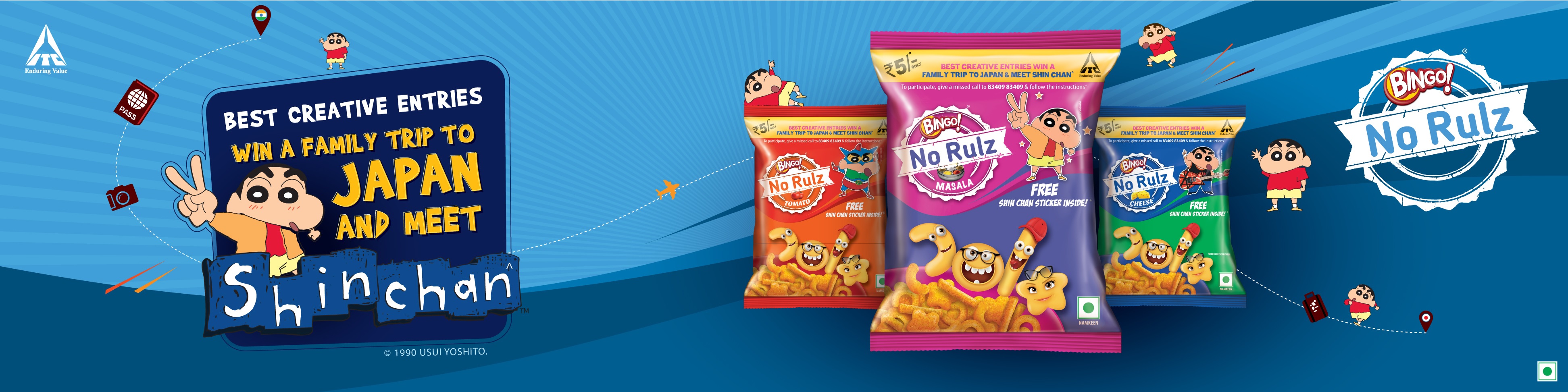 ** The Contest is only applicable on the following Bingo! No Rulz packs with Shinchan stickers free – Bingo! No Rulz Tomato, Bingo! No Rulz Masala and Bingo! No Rulz Cheese packs (“No Rulz Promo Packs”).