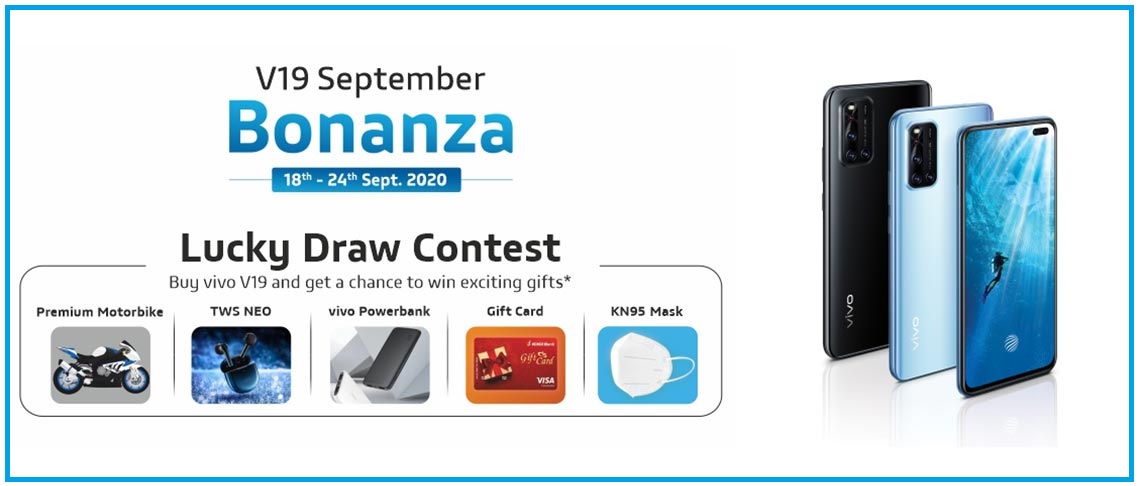 Upon the purchase of vivo V19(any variant) or every new purchase of vivo V19 from the recognised vivo retail outlet, customer will be given one lucky draw participation chance using the Lucky Draw link or QR code.