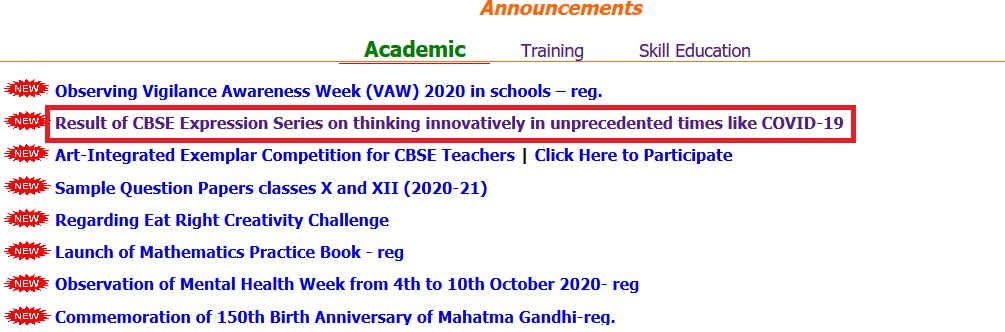 cbseacademic.nic.in CBSE Expression Series On Covid-19 Result 2020-21