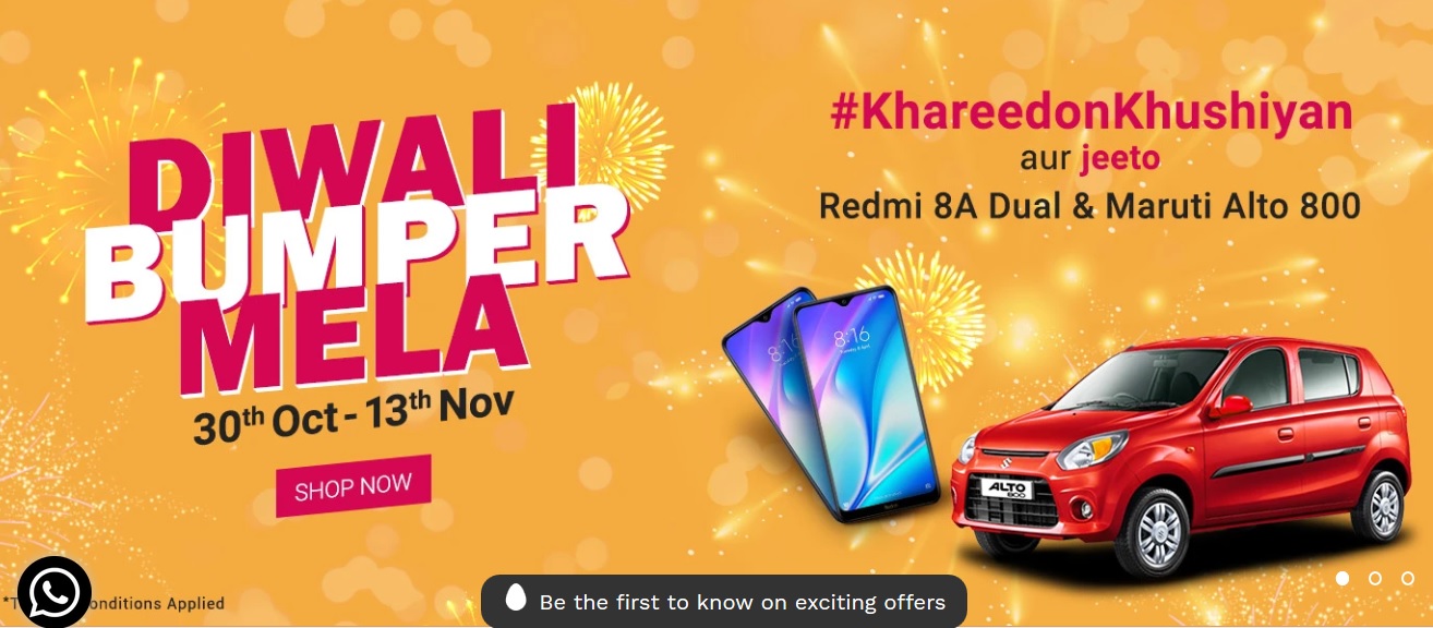 ** Participant must add coupon code “DIWALI” at the time of checkout. All or any orders without discount code “DIWALI” shall not be eligible for the DIWALI BUMPER MELA contest