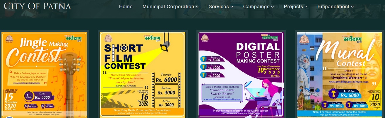 5. Top three winning entries are meant to be used by Patna Municipal Corporation for promotional and display purpose and also for any other use as may be deemed appropriate.