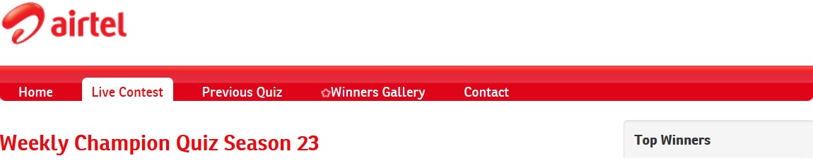 Airtel Victory Zone Weekly Champion Quiz 2020 Season 23 : Contest Zone