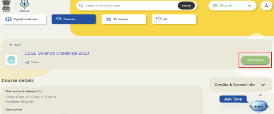 4) On reaching the “CBSE Science Challenge- 2020” course home page, click on Join Course to register.