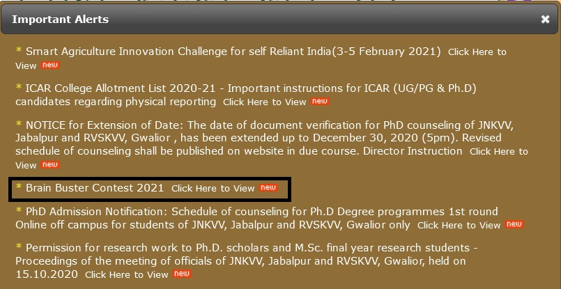 JNKVV Brain Buster Contest 2021 : Jawaharlal Nehru Krishi Vishwa Vidyalaya