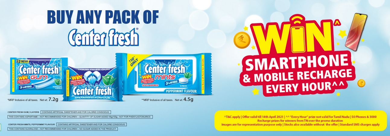 The contest will run on limited stocks of Center Fresh Rs 1 packs, Center Fresh 3 layer mint and Center Fresh 3 layer gum packs. Stock without offer would also be available in market.
