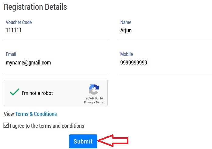 ** Enter your Unique Voucher Code, Name, Mobile number and Email ID and click “Submit”