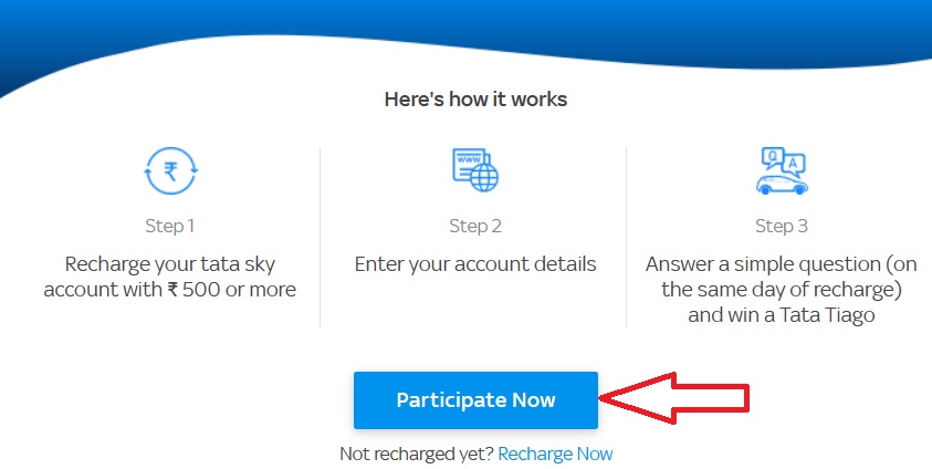 ** On successful recharge of the Tata Sky account on any of the Tata Sky platforms i.e. Tata Sky website/Tata Sky app, a link to the Contest question page will be displayed on the recharge completion page;