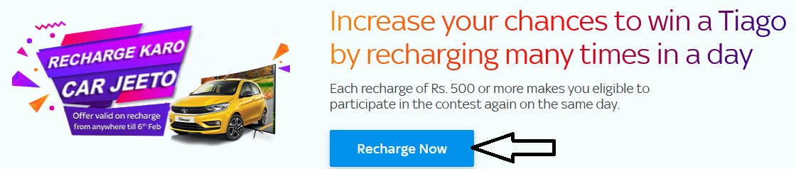 Contest Name : Tata Sky Recharge Karo Car Jeeto 2021 Contest