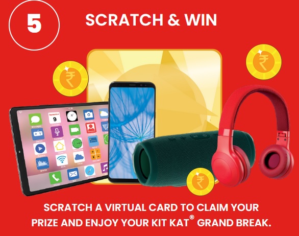 Step 4 : On scratching the digital scratch card- The per-minute winner will receive the cash message of Rs. 100(for KITKAT 2 Finger Mini 12.8g pack) or Rs. 200(for KITKAT 3 Finger 27.5g pack) which they can redeem via NEFT/UPI/e-Wallet.
