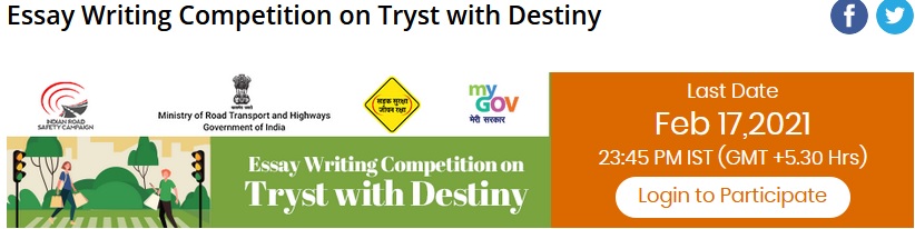 Website : https://www.mygov.in/task/essay-writing-competition-tryst-destiny/
