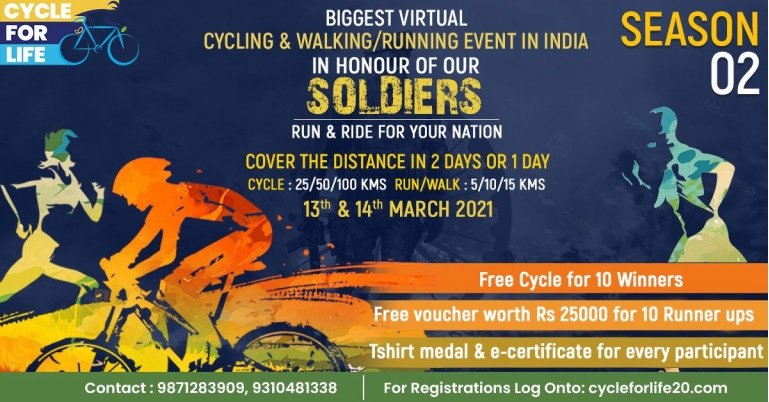 5. Cycle for Life : Season 2 will be a Two-day event starting on 13th March 2021 at 2 AM, and ending on 14th March 2021 at 11:59 PM.