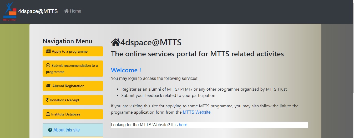 ** Applications should be prepared online at the site https://4dspace.mtts.org.in/home.php.
