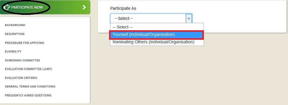 ** An applicant can nominate / can be nominated for only one award category that is either the National Award or the International Award, in a particular year.