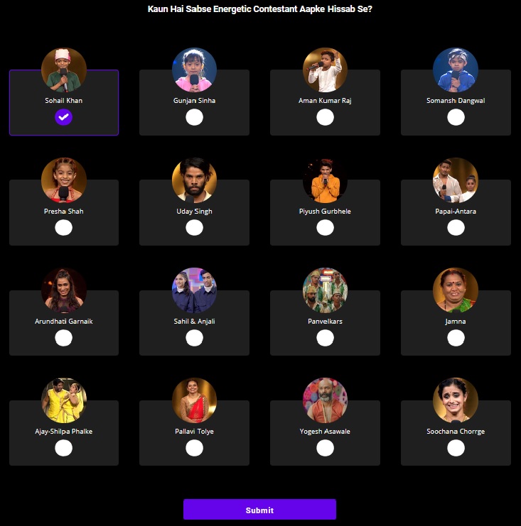 ** After so logging into Voot App, the Participants will have to select a contestant of the Program from the options provided in response to the Pulse Meter Poll Question (e.g. who is the power performer of the week?).