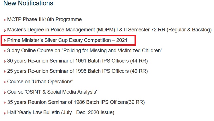 svpnpa.gov.in Prime Minister’s Silver Cup Essay Competition 2021 : Sardar Vallabhbhai Patel National Police Academy