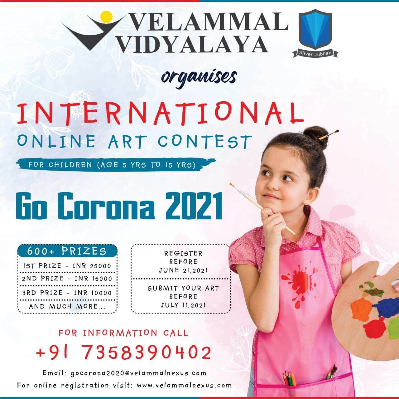 Velammal Nexus, a dedicated Educational organisation that creates new opportunities for the students to discover their talents and explore themselves, is organising GO CORONA 2021 an International Online Art Contest for Kids to kindle their latent talent and to sensitize them on the deadly pandemic, COVID 19.