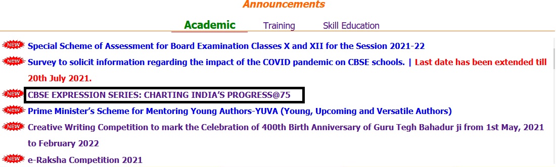 CBSE Expression Series 2021 on Charting India’s Progress@75 : cbseacademic.nic.in